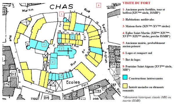Présentation Chas est une petite commune de 359 habitants, membre de la communauté de communes de Billom.-Saint-Dier, et adhérente à l’Association des Forts Villageois d’Auvergne. Depuis plusieurs années, la municipalité oeuvre à entretenir et restaurer son patrimoine, et en particulier le Fort : |