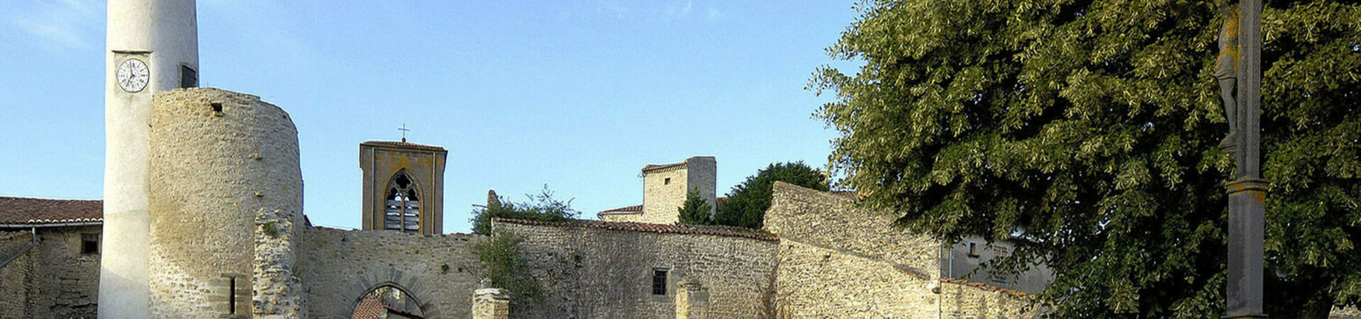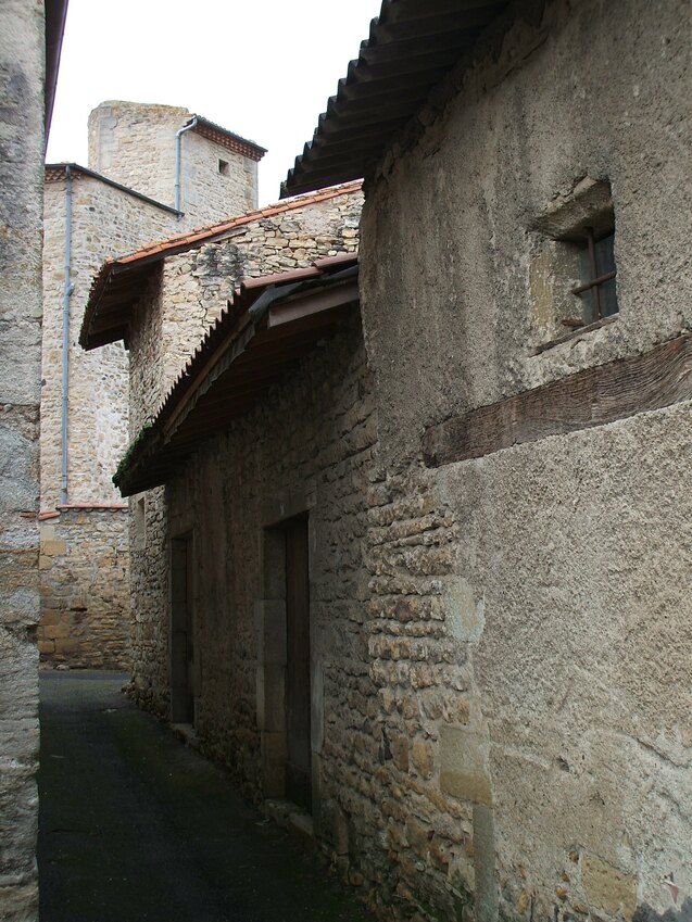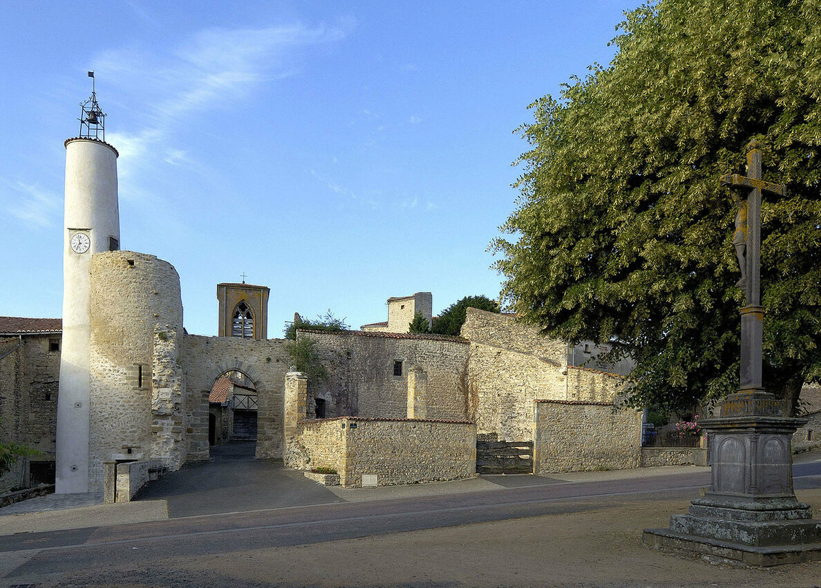 La partie ouest du Fort est occupée par la maison forte dont le logis conservé est actuellement partagé en deux propriétés. Doté d’une tour et d’une tourelle d’escalier, il est éclairé par des baies à croisées et des fenêtres à traverses permettant de le dater des XIVème ou XVème siècles. En revanche, les communs et le donjon circulaire qui occupaient l’espace au Nord ont disparus, de même que la tour occidentale de la porte nord, dont on peut encore lire la trace dans la courtine. La porte nord et la tour qui y est accolée, ainsi que le porche de l’église, daté de 1588, sont inscrits à l’Inventaire supplémentaire des Monuments Historiques. |