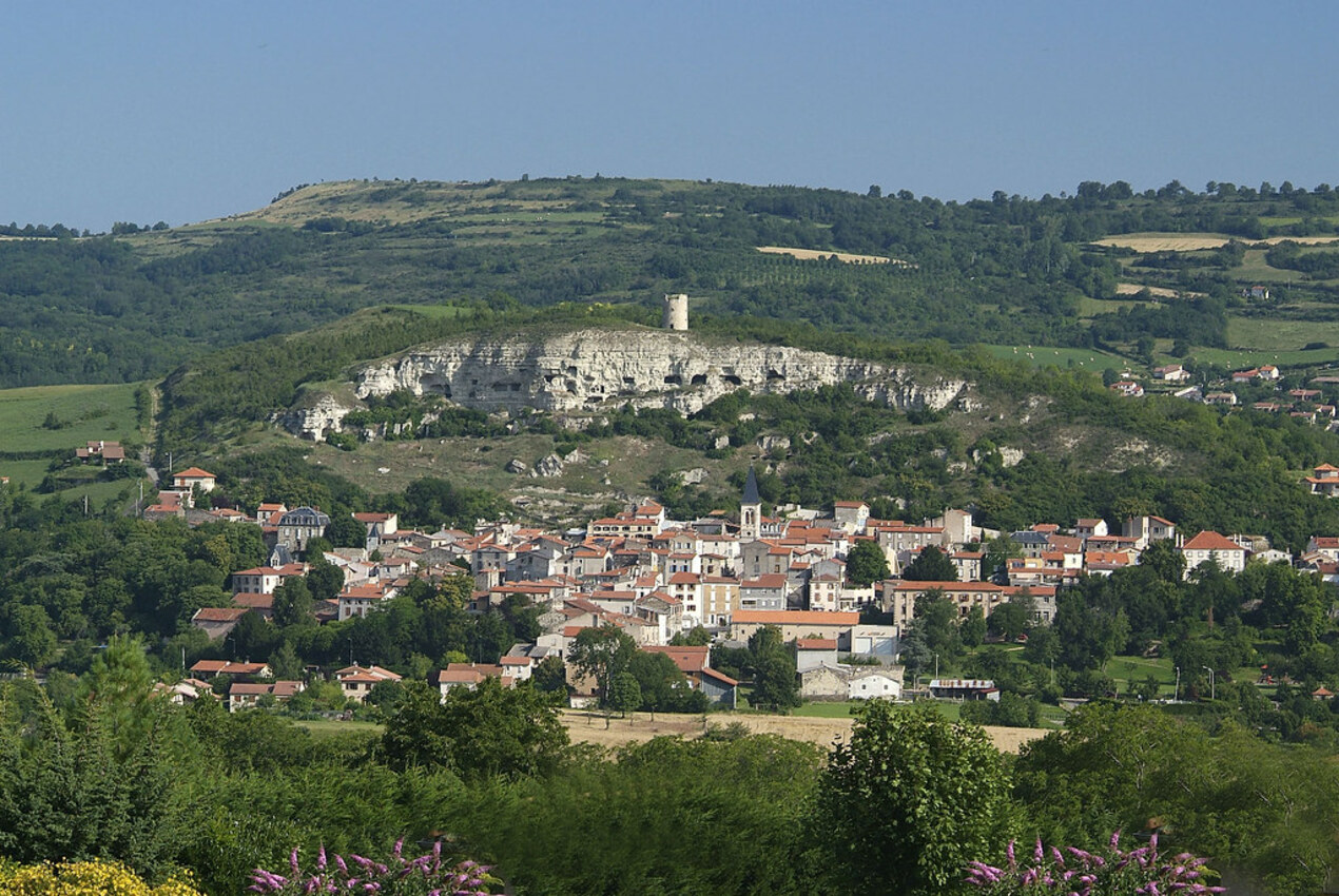 > Au milieu du XVe siècle, le village de la Roche, dont un dessin figure dans l’Armorial de Guillaume Revel (milieu du XVe siècle), était alors divisé en deux quartiers, séparés par un terrain vague. Le quartier haut, appelé le « Fort », au pied de la falaise creusée de grottes, était entouré, sur trois côtés, d’un mur crénelé, qui au nord s’appuyait au relief. Le quartier inférieur, dans la partie orientale duquel étaient situées la chapelle et la maison forte, était protégé par un rempart qui, à ses deux extrémités, rejoignait celui du quartier du Fort. Cette disposition correspond sans doute à deux étapes dans l’élaboration de la fortification.